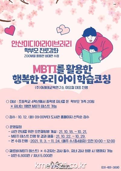 접수는 다음달 12일부터 안산미디어라이브러리 홈페이지를 통해 20가정까지 선착순으로 접수 가능하며, 사전 MBTI 테스트 후 강의에 참여할 수 있다.