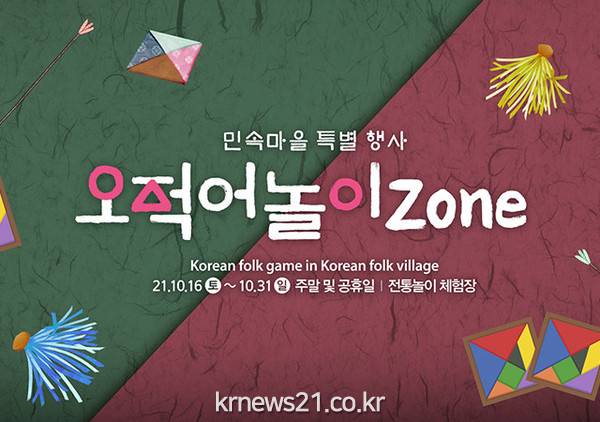 ▲ [이미지제공 = 한국민속촌]한국민속촌이 전통 민속놀이를 즐길 수 있는 체험 공간 ‘오적어놀이’ 존을 10월 16일부터 10월 31일까지 주말 및 공휴일간 운영한다.