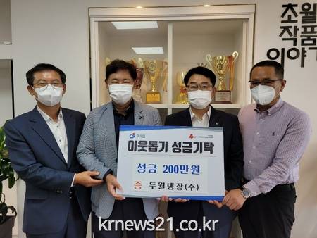 ▲ [사진제공 = 광주시]광주시 초월읍 대쌍령리에 위치한 ㈜두월냉장 백남조 대표는 최근 광주시 초월읍 행정복지센터를 방문해 저소득 취약계층을 위한 성금 200만원을 기탁했다.