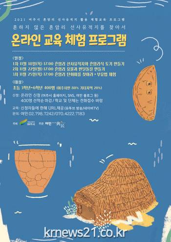 ▲ [사진=홍보포스터]경기도 여주시 흔암리 선사유적지 활용 체험교육 프로그램 ‘흔하지 않은 흔암리 선사유적지를 찾아서’가 2017년부터 진행된 가운데 지난해에 이어 올해도 온라인으로 체험 교육 프로그램을 진행한다고 밝혔다.