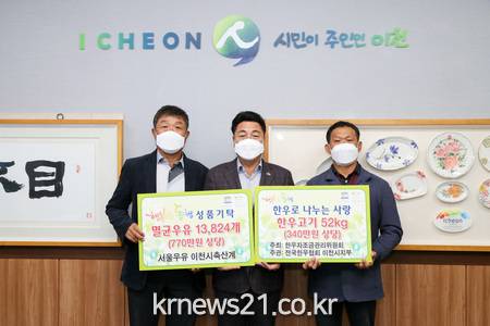서울우유 이천시축산계는 총 173개 농가가 회원으로 등록되어 있고, 2013년부터 해마다 멸균우유를 기탁하며 이웃돕기에 앞장서고 있다. 올해에도 멸균우유 13,824개(770만 원 상당)를 기탁하여 1년간 저소득층 48가구에 나누어 정기 배송될 예정이다.