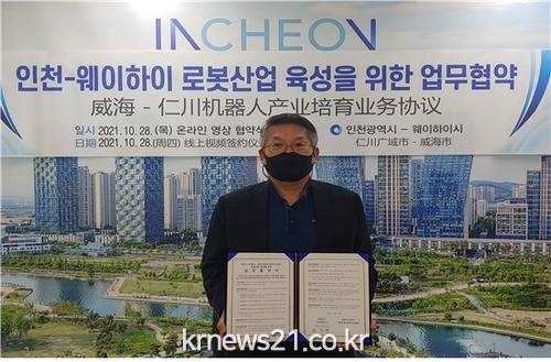 이번 업무협약은 같은 날 중국 웨이하이시가 온라인으로 개최한‘제4회 한중FTA 지방협력 공동위원회’개최를 계기로 인천시에 로봇분야 협력을 제안하면서 행사 일정에 포함해 진행 됐으며, 양 도시 바이오 산업, 경제통상 분야 등 관계자들이 영상으로 참여한 가운데 온라인(비대면)으로 체결했다.