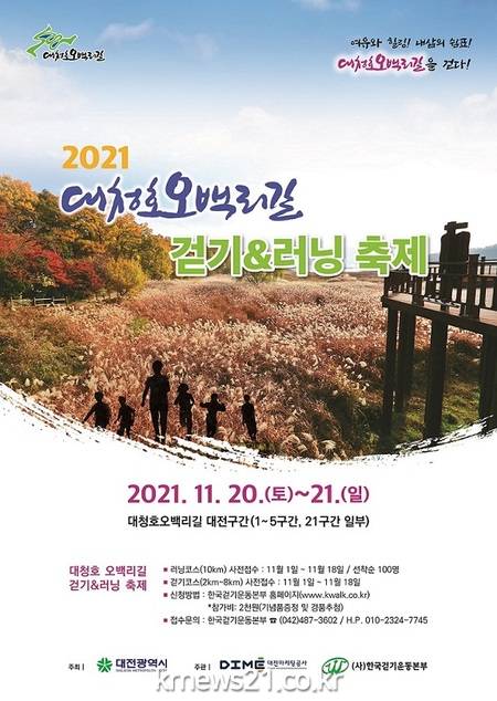 ▲ [사진=홍보포스터]대전시는 깊어진 가을 길을 걷고, 뛰고, 힐링할 수 있는 ‘대청호오백리길 걷기&러닝 축제’를 11월 20일부터 21일까지 이틀 간 개최한다고 밝혔다.