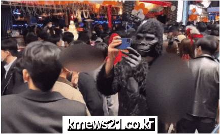 ▲ [온라인 커뮤니티 캡처]경찰이 핼러윈데이인 지난달 31일 서울 용산구 이태원에서 고릴라 탈을 쓰고 여성들을 불법촬영한 일명 '고릴라남' 수사에 착수했다.