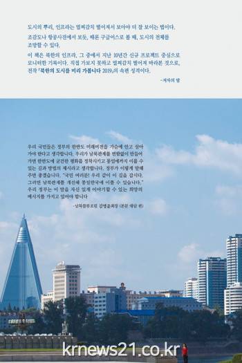 예컨대 △평양종합병원 건설 사업 △삼지연시 건설 사업 △신두만강대교 건설 과정 △원산갈마 국제관광지구 건설 사업 △평양의 밤을 밝혀주는 희천수력발전소, 광역두만강개발계획 경과 △나진하산 복합물류 프로젝트 등을 다루고 있다. 또 부록으로 개성공단, 신포경수로 사업에 직접 관여했던 건설 엔지니어와 나눈 대담도 포함됐다.