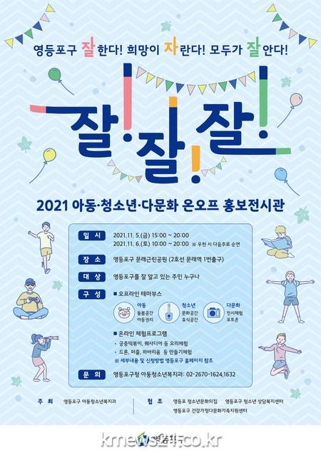 ‘영등포구 잘한다! 희망이 자란다! 모두가 잘안다!’라는 문구의 줄임말로 ‘2021 잘잘잘 아동‧청소년‧다문화 홍보전시관’이라 이름지어진 이번 행사는 문래근린공원 내 체험부스, 관내 아동‧청소년‧다문화 복지시설과 비대면 온라인을 통해 동시 진행되며 구민 누구나 자유롭게 방문해 즐길 수 있다.