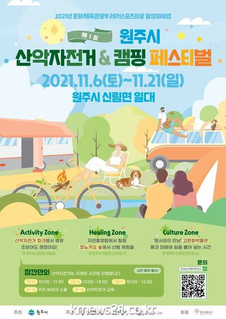 ▲ [사진=홍보포스터]‘2021 원주시 산악자전거&캠핑페스티벌’이 11월 6일부터 21일까지 원주산악자전거파크를 중심으로 신림면 일대에서 열린다.