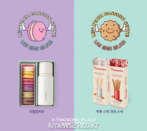 신제품은 마카롱과 보온병을 함께 꾸린 ‘투썸 치얼업키트’와 ‘뚜론 스틱 견과 스낵’ 2종이다. 수험생인 Z세대가 선호하는 밝고 화사한 디자인의 패키지에 재치와 응원의 메시지를 담았다.