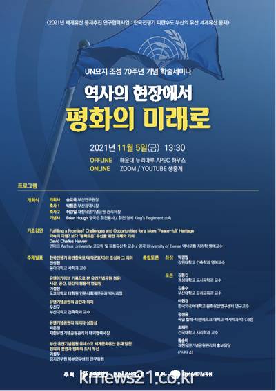 ▲ [사진=홍보포스터]부산시(시장 박형준)는 부산연구원과 함께 내일(5일) 1시 30분부터 누리마루 APEC 하우스에서 유엔묘지 조성 70주년 기념 학술세미나 ‘역사의 현장에서 평화의 미래로’를 개최한다고 밝혔다.