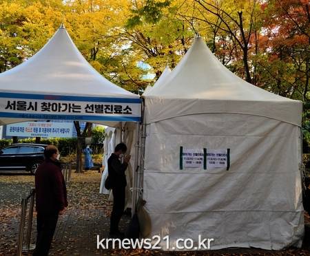 ▲ [사진제공 = 영등포구]영등포구(구청장 채현일)가 오는 12일 18시까지 전통시장 밀집 지역인 영등포동 중마루공원에 ‘찾아가는 선별진료소’를 운영한다.