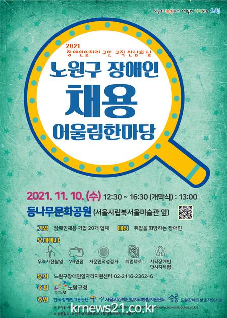 ▲ [사진=홍보포스터]서울 노원구(구청장 오승록)가 오는 10일 등나무문화공원에서 ‘장애인 채용 어울림 한마당’을 개최한다고 밝혔다.