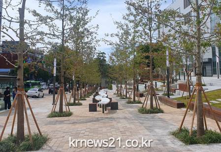 아울러 녹지와 인도 사이를 가로막고 있던 수목을 옮겨 심어 개방감을 높이고 두 곳을 자연스럽게 연결되는 하나의 공간으로 조성했다.