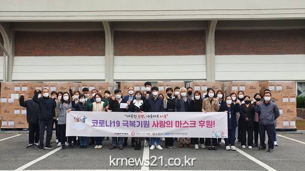 ㈜TOPTEC은 경북 구미시에 위치한 자동화설비 및 대체에너지, 신재생에너지 관련 사업체로 디스플레이, 반도체, 2차 전지 관련 자동화설비를 개발 생산하며, 자회사에서 초청정 마스크를 생산하고 있어 지역 내 마스크 기부를 꾸준히 이어오고 있다.