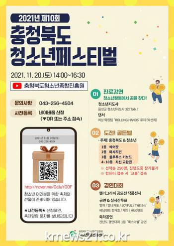 충청북도청소년페스티벌은 11월 20일 토요일 오후 2시 충청북도청소년종합진흥원 유튜브 채널을 통해 참여할 수 있다.