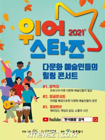 ▲ [사진=홍보포스터]한국예술문화단체총연합회(회장 이범헌, 이하 한국예총)가 주관하고, 서울시가 후원하는 다국적 예술인들의 축제 콘텐츠 ‘위어스타즈’가 서울·경기도 가평 등에서 사전 제작을 마치고 11월 1일 한국예총 유튜브 채널에서 공개됐다.