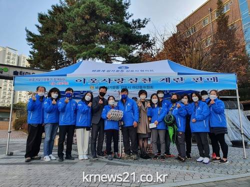 ▲ [사진제공 = 김포시]마산동 바르게살기위원회(위원장 정재순)에서는 지난 11월 16일 지역내 취약계층을 돕기 위한 “연말 불우이웃돕기 계란판매 행사”를 가졌다.