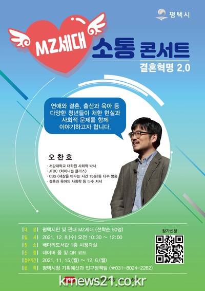 ▲ [사진=홍보포스터]평택시(시장 정장선)는 오는 12월 8일 배다리도서관에서 MZ세대 소통콘서트를 개최한다.