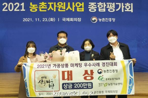 ▲ 사진=충청북도청충북농업기술원(원장 서형호)은 23일 농촌진흥청 국제회의장에서 개최된 ‘2021년 농촌자원사업 종합평가회’에서 6개 부분 경진의 각종 수상을 휩쓰는 쾌거를 달성했다고 밝혔다.