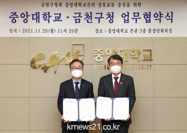 금천구(구청장 유성훈)가 11월 29일(월) 중앙대학교와 상호 긴밀한 교류와 협력을 통한 발전을 위해 업무협약을 체결했다고 밝혔다.