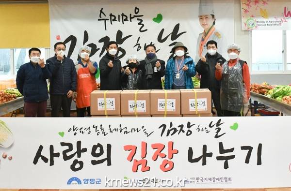 이번 사랑의 김장 나눔 행사는 한국지체장애인협회 양평지회 박진수 회장과 임직원이 참석한 가운데 현장에서 만들어진 김장김치 300kg이 전달되었다.