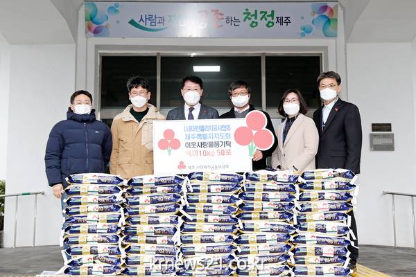 ▣ 제주시에서는 12. 1.(수), (사)대한물리치료사협회 제주특별자치도회(회장 고용수)에서 다가오는 연말을 맞아 이웃사랑 백미(10kg) 50포(150만원 상당)를 제주시로 기탁해 왔다고 밝혔다.