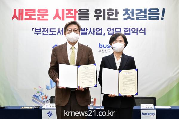 ▲ 사진=부산광역시부산시(시장 박형준)와 부산진구(구청장 서은숙)는 오늘(2일) 오전 부전도서관에서 지난 1963년 개관 후 노후화로 시설개선이 필요한 부전도서관의 개발을 위한 업무협약을 체결했다고 밝혔다.