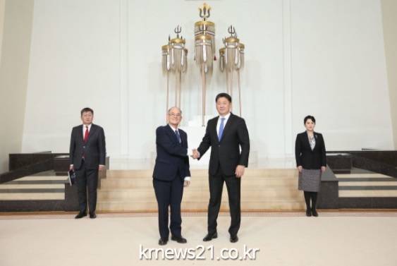 ▲ SHUUD.mn=뉴스21통신.무단전재-재배포 금지U.Khurelsukh 몽골 대통령은 신임장 수여식에서 Jorge Alberto Ferrer Rodriguez 몽골 주재 쿠바공화국 특명전권대사를 영접했다.