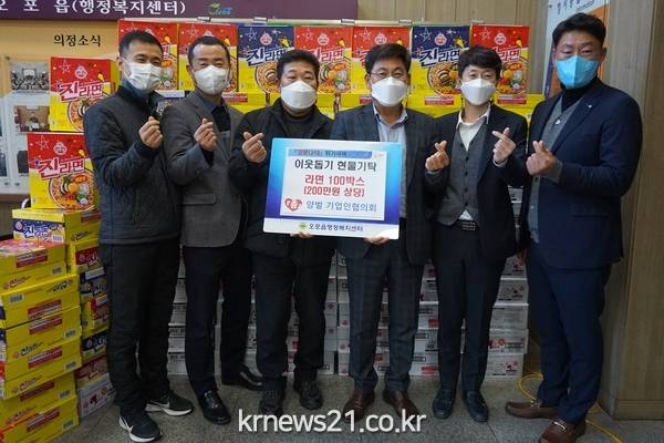 양벌기업인협의회 이택수 회장과 회원 일동은 지난 8일 오포읍 행정복지센터를 방문해 라면 100박스(200만원 상당)를 기탁했다.