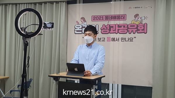 온오프라인 방식이 병행된 이날 공유회는 1, 2부로 나눠 총 2시간에 걸쳐 진행됐다. 코로나19 예방을 위해 구로구평생학습관 2관 현장에는 1부 참가자인 활동 사례 발표자 등 최소 인원만 참석했다. 그 외 2부 프로그램 강사와 참가자, 지역 주민들은 온라인 프로그램인 줌(ZOOM)을 통해 참여했다.