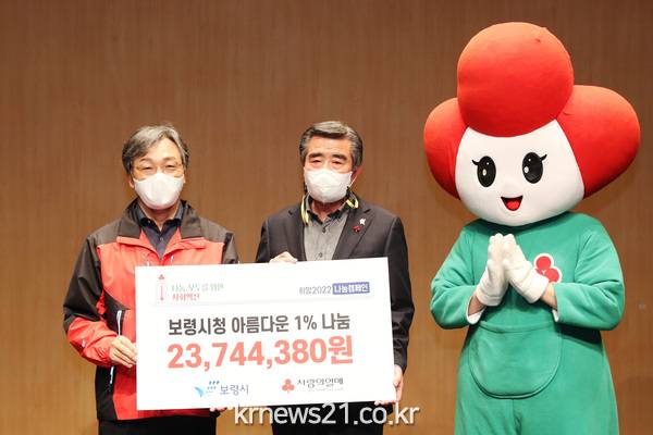 보령시청 소속 공무원과 공무직 1196명이 지난 1년간 아름다운 1% 나눔운동으로 모금한 2374만 원과 보령LNG터미널(주) 및 삼화원종에서 각각 2000만 원을 기탁했다.