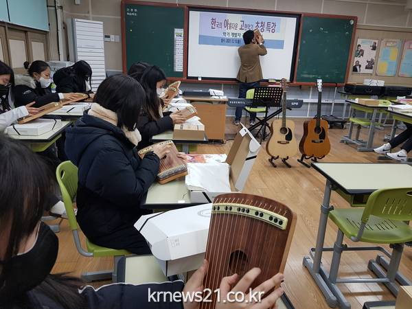 ▲ 사진=김포교육지원청 제공경기도김포교육지원청 김포여자중학교(교장 이혜경)는 악기 개발자 김민홍 선생님과 함께하는 문화예술 특강을 개최했다.