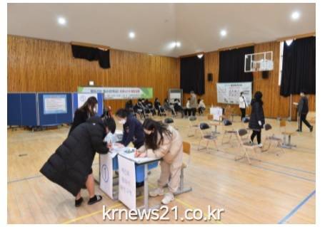 ▲ 사진=중랑구중랑구(구청장 류경기)는 17일 오전 지역 내 한 중학교 강당에서 백신접종을 희망하는 학생 60여 명을 대상으로 학교로 찾아가는 방문접종을 진행했다.