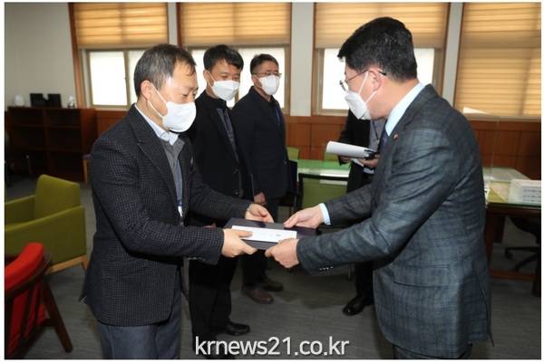 ▲ 사진=제주시제주시는 22일, 시장 집무실에서 2021회계연도 세외수입 징수 우수 부서 10개 부서를 선정해 포상했다.