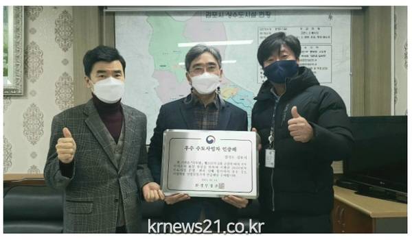▲ 사진=김포시김포시 맑은물사업소(소장 임헌경)가 환경부가 주관하는 「2021년 일반수도사업 운영·관리 실태평가」에서 ‘매우 우수’인 A등급을 달성하고 장려상을 받았다.