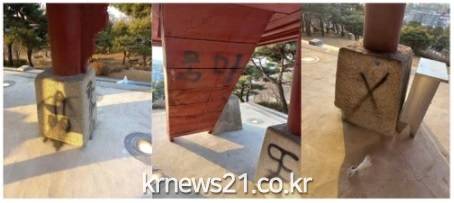 시 관계자는 현장에서 범행에 사용된 것으로 추정되는 스프레이 페인트 등을 수거했다. 또 도시안전정보센터에 폐쇄회로(CC)TV 확인 요청을 하고 경찰에 수사를 의뢰했다.