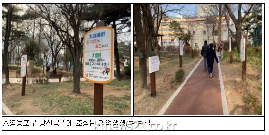 ▲ 사진=영등포구영등포구(구청장 채현일)는 치매 인식 개선 및 치매 친화적 환경 조성을 위해 당산공원 산책로에 ‘기억생생(生生)길’을 조성했다고 밝혔다.