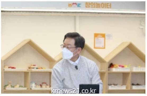 이 후보는 성남시장 재임 중 공공 키즈카페와 장난감도서관 등을 만든 경험을 언급하면서 보육 영역에서 공공의 역할 확대를 약속했다.
