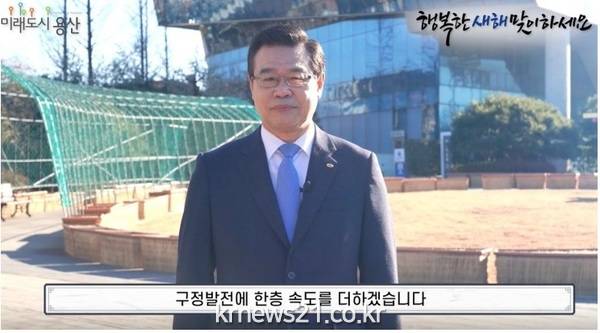 서울 용산구(구청장 성장현)가 코로나 19 상황을 감안해 임인년 새해 인사회를 비대면으로 대신했다. 3일 구청장 신년사를 영상으로 촬영, 구 유튜브로 송출한 것.