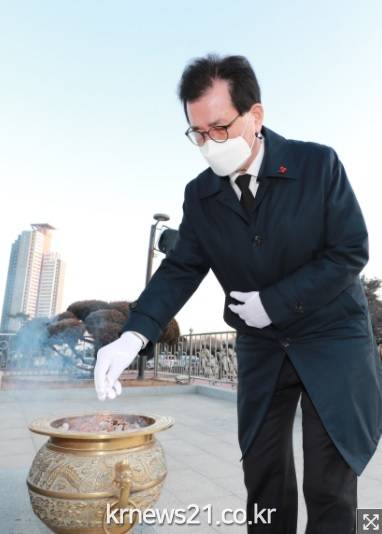 ▲ 사진=충청북도청이시종 충북도지사는 3일 충혼탑 참배를 시작으로 임인년(壬寅年) 새해의 힘찬 출발을 알렸다.