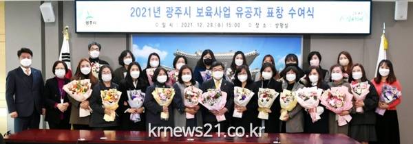 ▲ 사진=광주시광주시는 지난 29일 시청 상황실에서 ‘2021년 보육사업 유공자 표창 수여식’을 개최했다.
