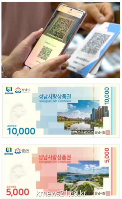 상품권은 성남지역 전통시장, 소규모 점포, 택시 등 가맹점(모바일 2만2216곳, 종이 2만182곳)에서 현금처럼 사용할 수 있다.