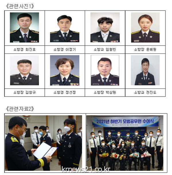 하반기 모범공무원은 구급대원 5명, 종합상황실 1명, 특수구조단 1명, 행정업무 1명을 선발하였으며, 특히 코로나19 대응업무에 힘쓴 구급대원이 다수가 발탁·선정되었다. 또한 정부포상 절차에 따라 엄정한 공적심의를 거쳐 선발되었으며, 부상으로는 매 월 5만원씩 3년간 모범공무원 수당이 지급된다.