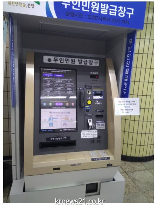 ▲ 사진=은평구서울 은평구(구청장 김미경)는 지난 21일 구산역에 무인민원발급기를 설치해 운영개시 했다고 밝혔다.