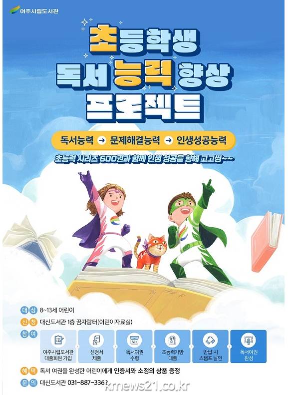 ▲ 사진=여주시여주시(시장 이항진) 평생교육과 여주시립도서관은 오는 2022년 1월 4일부터 “초등학생 독서능력 향상 프로젝트”(이하 초능력 프로젝트)사업을 운영한다.