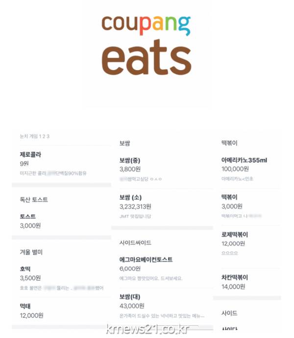 캡처된 쿠팡이츠 앱 화면을 보면 '분식_test'라는 상호의 음식점 페이지에 올라온 메뉴 소개 글에 성적인 표현이 다수 들어가 있다. 또 해당 페이지에 노출된 가게 주소지 역시 실제로는 서울 강남구의 한 성인용품점인 것으로 알려졌다.