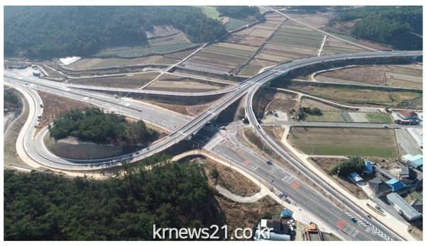 기존 도로 구간은 농기계와 공사차량 등 이용이 잦은 구간으로 도로 폭이 협소하고 선형도 구불구불해 평소 사고 발생 위험은 물론 교통 불편이 큰 구간이었다.