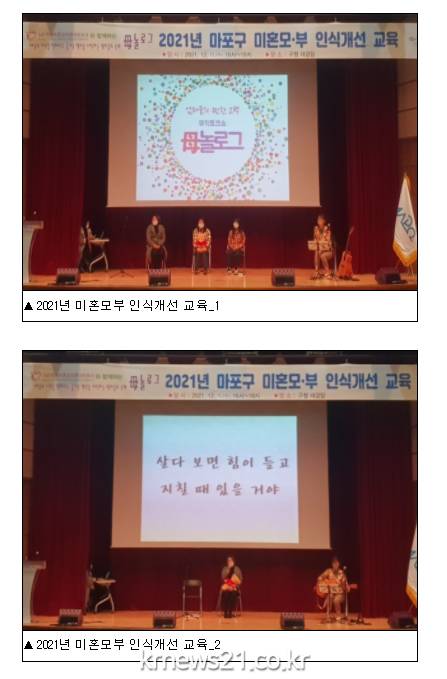 ▲ 사진=마포구마포구(구청장 유동균)가 지난 15일 마포구청 2층 대강당에서 ‘2021년 미혼모‧부 인식개선 교육’을 실시했다고 밝혔다.