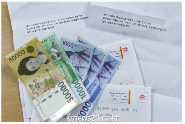 서울교통공사는 지난해 이러한 내용이 담긴 민원인의 편지가 현금 6만5000원과 함께 도착했다고 21일 밝혔다.