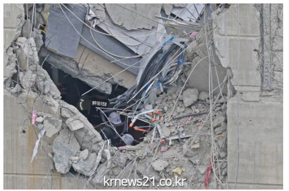 지난 11일 광주 화정동 아이파크 공사 현장에서 39층짜리 건물 중 23~38층 일부가 붕괴됐다. 이 사고로 1명이 다치고 노동자 6명이 실종됐다. 이 가운데 1명은 지난 14일 숨진 채 발견됐다.
