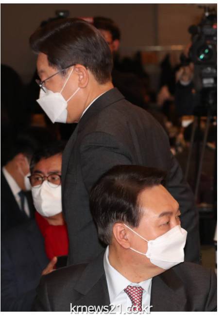 이재명·윤석열·심상정 세 후보의 가상대결에서는 윤 후보 40.7%, 이 후보 36.8%, 심 후보 4.5% 순으로 나타났다. 윤 후보가 오차범위 내에서 이 후보에 앞섰다.